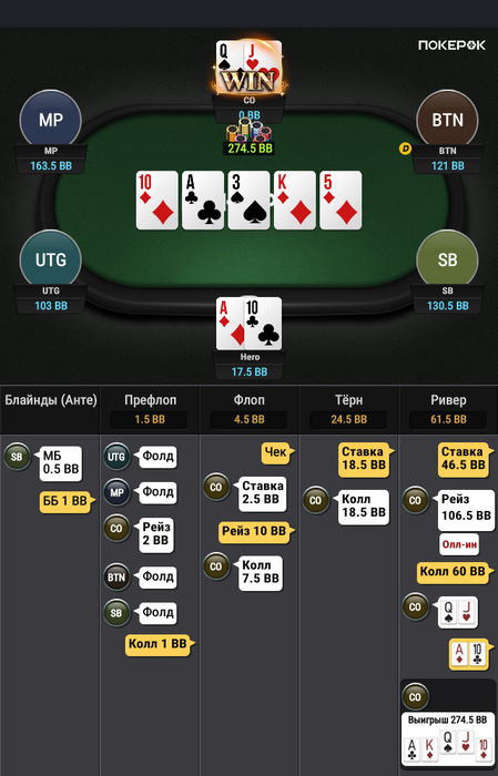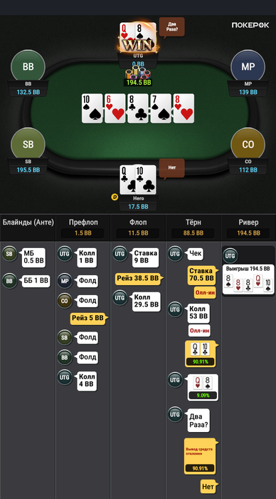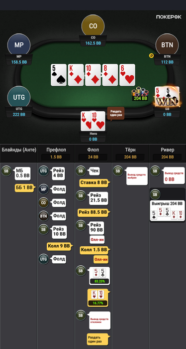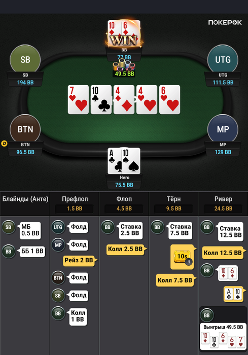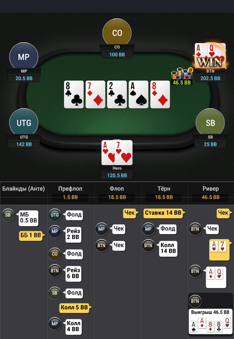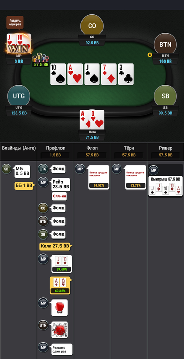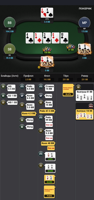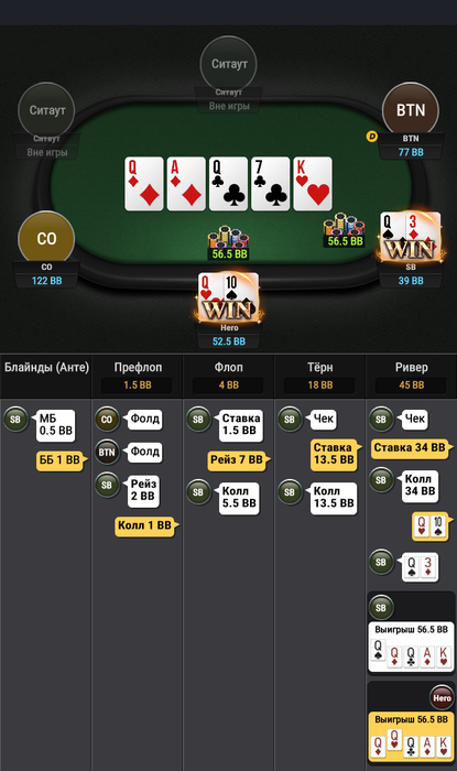 Рейзил на терне твою большую ставку да еще и в мультивей поте, могли бы быть и сеты и проч.