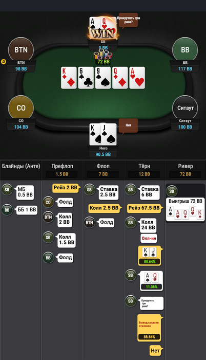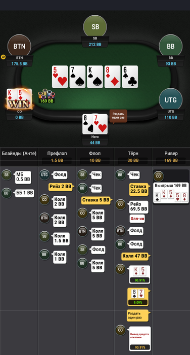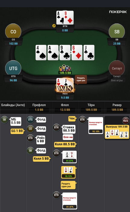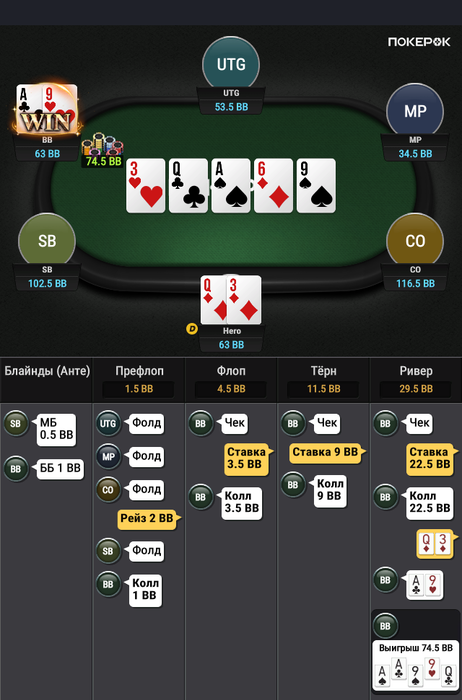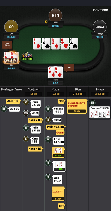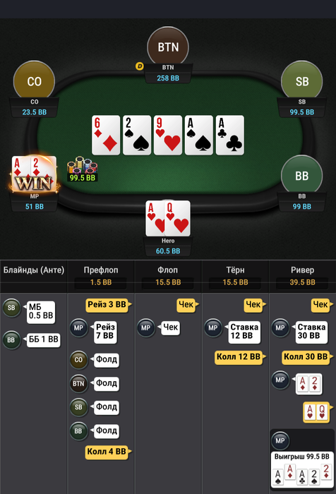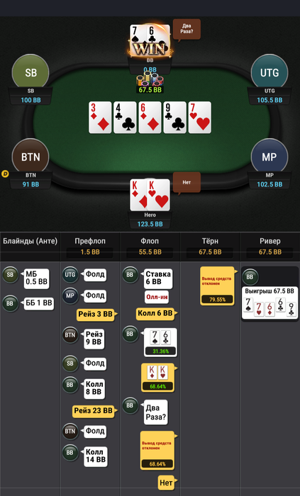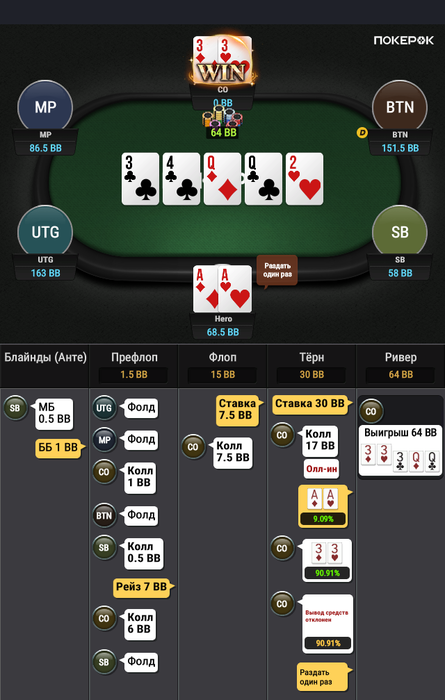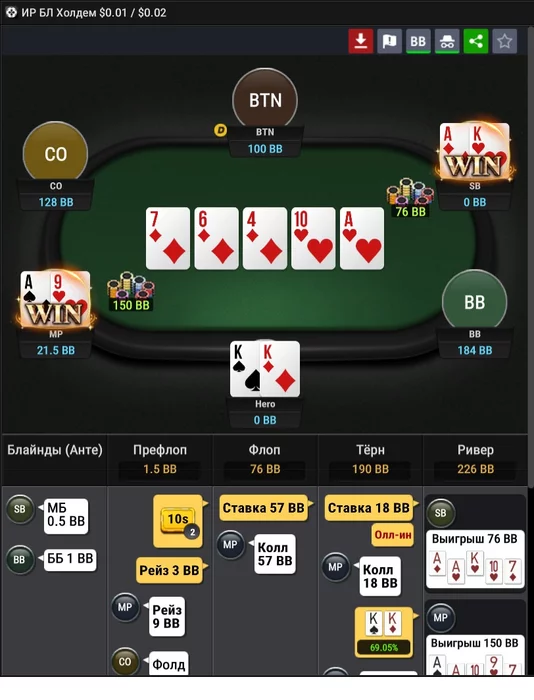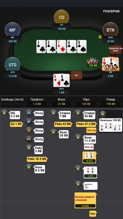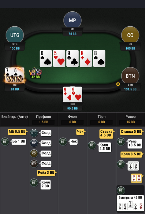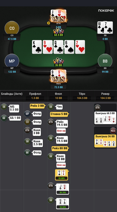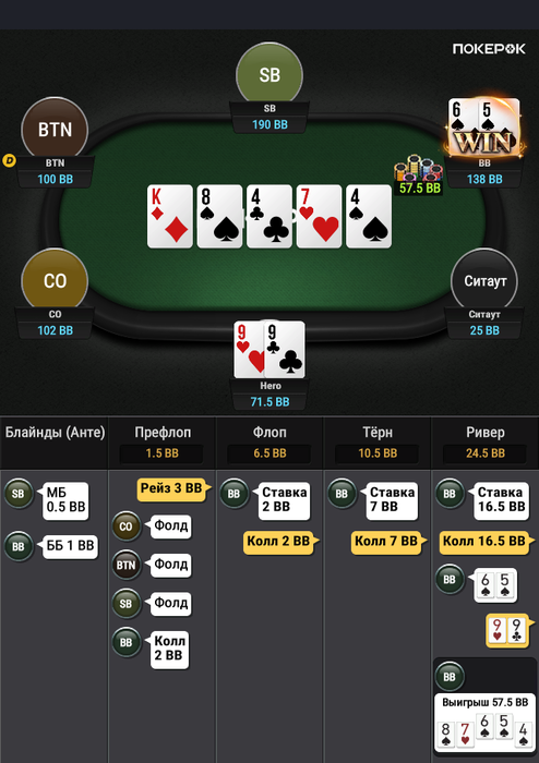 На флопе заколить с 2-мя девятками против КК огромный рейз. Как будто сама Ванга играла. :)