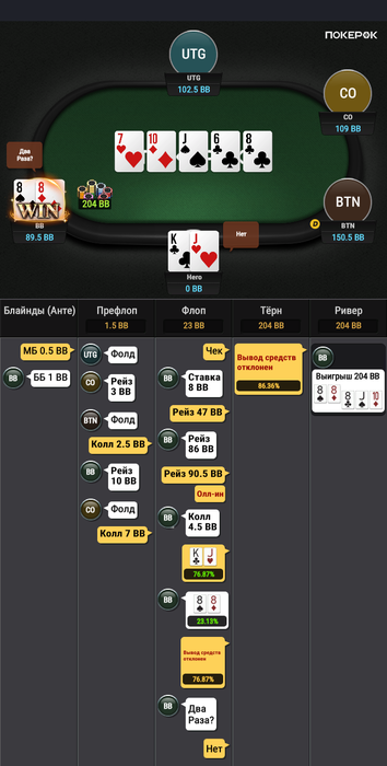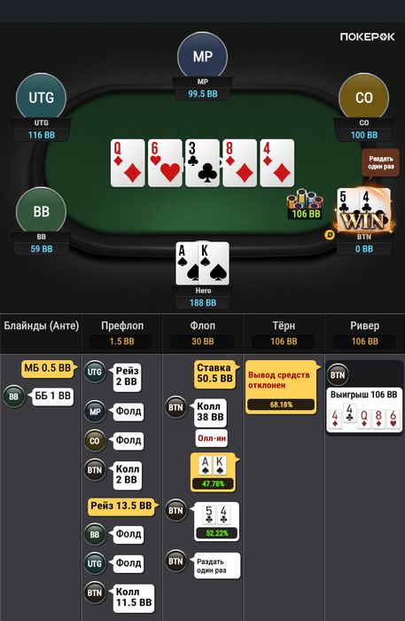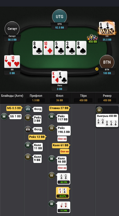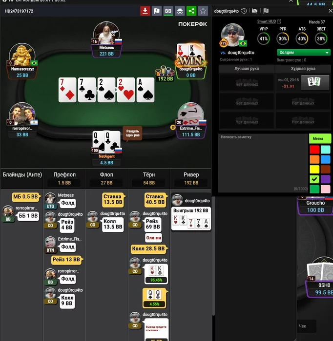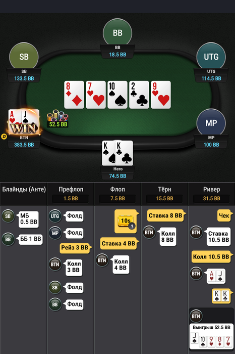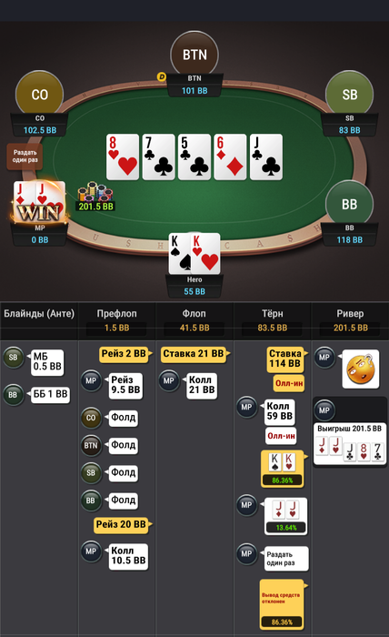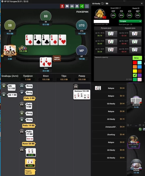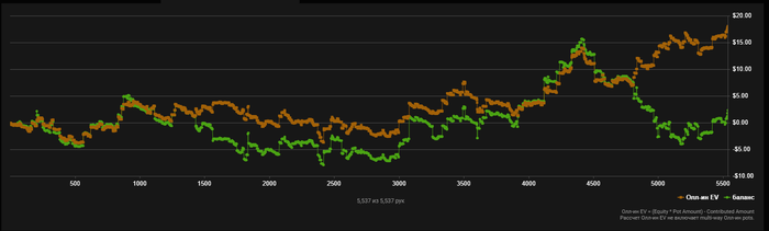 Не играл покерок давно, т.к. бр был выведен до 4$. Захотелось поиграть без стат, решил тряхнуть стариной. Прошел нл2 за неделю с вр 20/100. Видел тебя за столами, и как ни странно много старых ников встретил.
