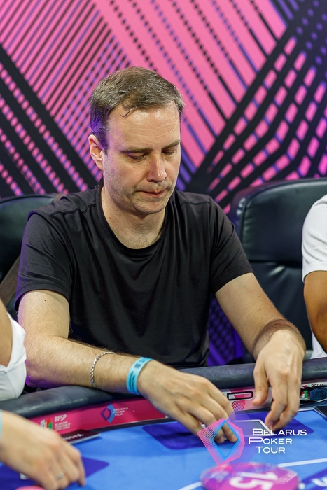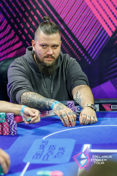 Показал невероятную игру в Heads-up. Безусловно самым запоминающимся стал лимп-банк, где Павел чекнул на блайнде . На доске поставил крупную ставку на терне, и ещё одну на ривере... на что получил рейз почти под олл-ин. Но заколлировал и угадал — Сергей показал пустоту .