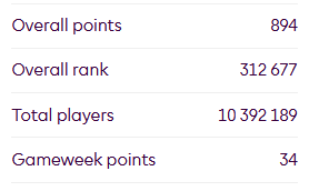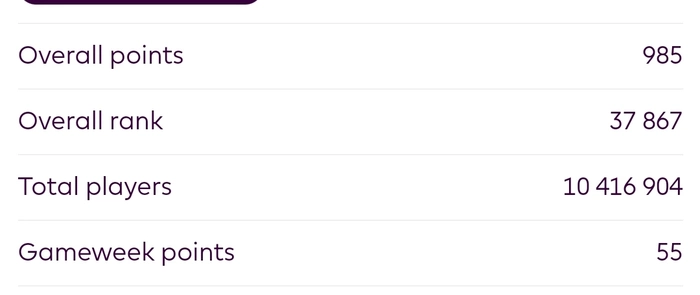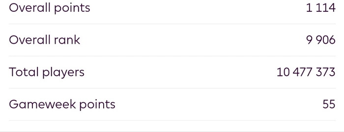 На удивление, не выпал из топ-50к, считаю, это успех. Это все, что хочу сказать об этом геймвике) Поменял сломавшегося Мбемо на Палмера, думал о платном трансфере в защиту, но скорее всего воздержусь, если больше никто не выпадет до дедлайна. В банке 4 млн., главное - грамотно ими распорядиться в дальнейшем)