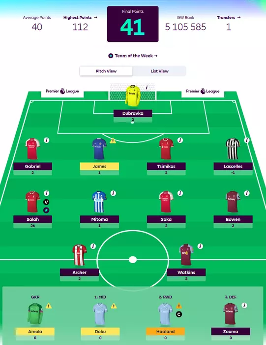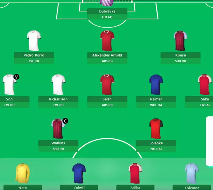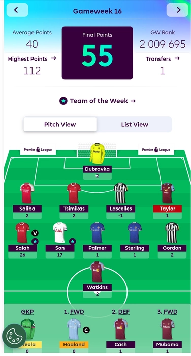 Именно то, чего я боялся, Шеффилд поставил автобус, и Вилла билась об него лбом весь матч, в итоге Уоткинс получил 2 фо. В то время как Сон и Салах набрали ожидаемые очки. Но я не мог идти против поляны с моим овероллом.