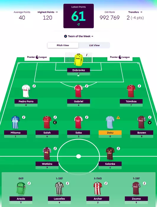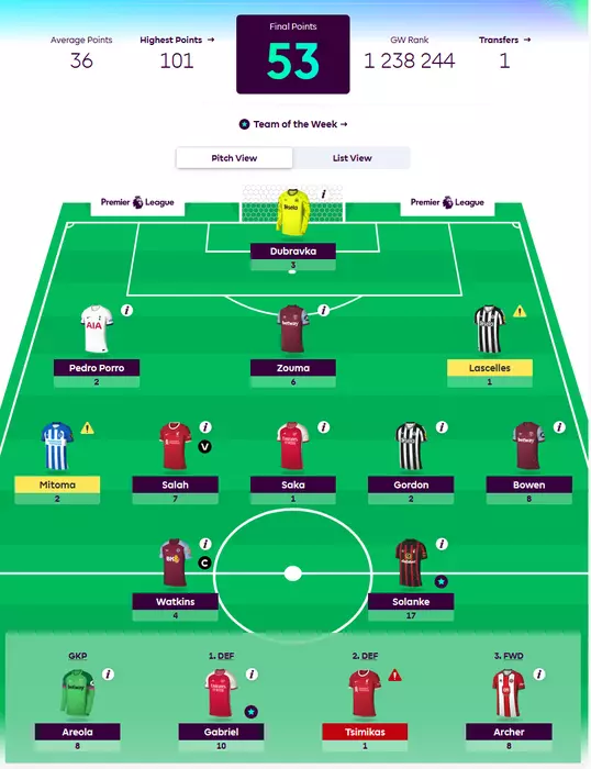 По капитану тоже остановился на Уоткинсе, хотя есть сомнения, что он не на пенальти, а капитанить лучше пенальтиста. Но думаю все же самым популярным капитаном будет именно он, а при моем оверолле лучше брать надёжные варианты, чем экспериментировать. Будь я, скажем, за пределами миллиона, я бы скорее всего брал дифф кэпа.