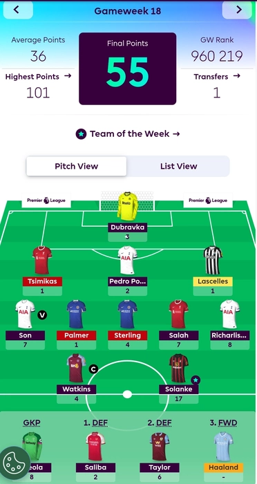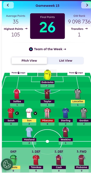 Пока чесал репу, Дубравка подорожал, на что совершенно не рассчитывал, думал ещё денёк продержится на 3.9, но скорее всего возьму и за 4.0, если не будет каких-то неожиданностей перед дедлайном. Несмотря на слухи о Рамсдейле и де Хеа, минимум до января он будет стоять, а то и до февраля. Похоже Уилсон выздоровел, и опять предстоит ротация с Исаком, соответственно держать слот для нападающего Ньюкасла нет смысла. Дальше в планах слив Кэша, а потом будем думать, что делать с бланком в 18 туре, пока так)