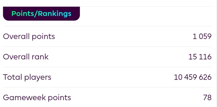 Не посчитаны очки Ласельса и не отминусовано 4 поинта за трансфер. Т.е. должно быть в итоге 63. Это топ400к сейчас