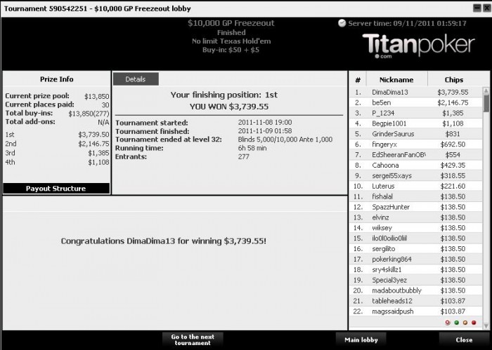 Последние 1,5 месяца очень удачно для меня сложились! На Кипре два топ 2 и вообще все турики отлично отыграл вылетев в два аута из остальных, кроме ужасного турнира по NLH/PLO, где при 12 оставшихся имел средний на призы, но вылетел первым на финалке... В онлайне вылечил болезнь 5-6 на пс и выиграл порядка 50к отыграв порядка 1к турниров с аби >100$