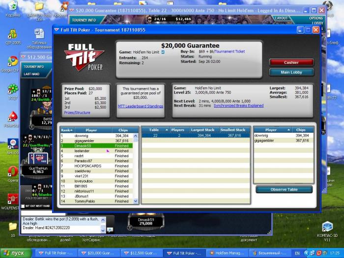 Потом был в ИТМ, а так же попал на финалку 20к за 75$. Финалка была не очень сильная, но первого места я занять не сумел, проиграв в последней раздаче монетку 99<АК.(король-то еще предательски вышел на ривере)