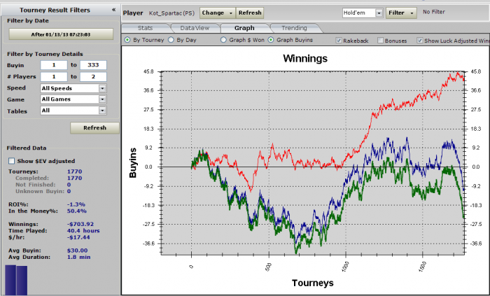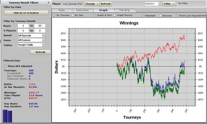 Как я заебался!!! НО я сделал это) вывел сессию в 0 и плюс за счёт рб) зачем я это сделал - хер знает. все равно день-то в минусе, т.к. насосал во всех ткупах, особенно цинично вылетел за 4 человека до денег в омаху хайло. Чел на бабле на каком-то треше с тузом вколил олын со средним стеком и убил мои А2хх. А еще в биге по 11 вылетел 135й вроде из 11000 народу. но к такой хуйне я уже привык.