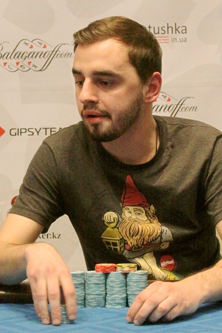 У первого Александра оказались , у второго - . На флоп легли . Переживающий за друга Петров (которого, между прочим, выбил именно Беринбейн) вскочил на ноги: "Бубна-бубна!" - но дилер его не послушался, положил и .