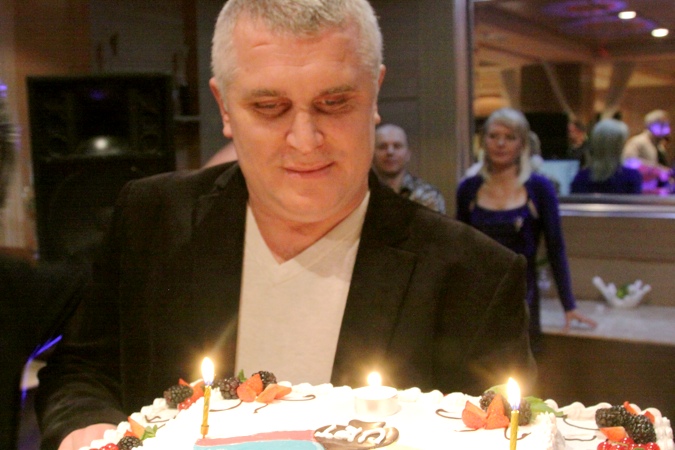 В ресторане клуба заканчивается банкет по случаю окончания "Гранд-финала" URT. Финальной точкой праздника стал вынос именинного торта. Алексей Крашенников, который три года назад вместе с друзьями из "Крещатика" выступил с идеей Ukrainian-Russian Tour, задул три символические свечки. С днем рождения...