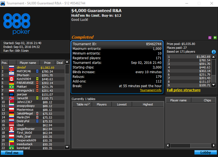 * 888 - единственный рум, в котором можно нормально играть, но пока не отдает толком.