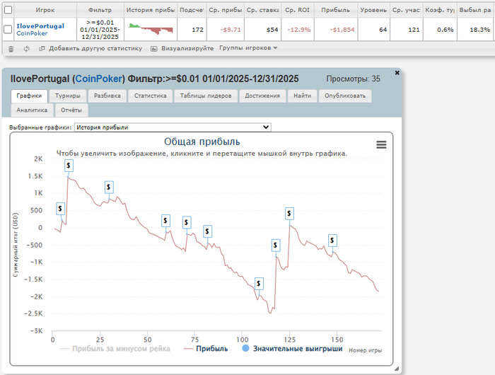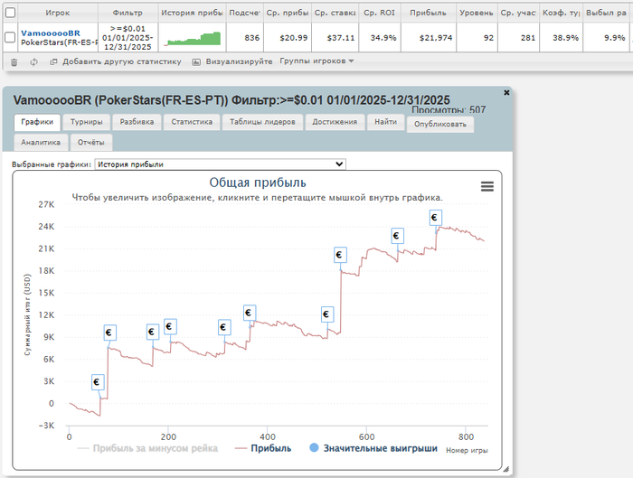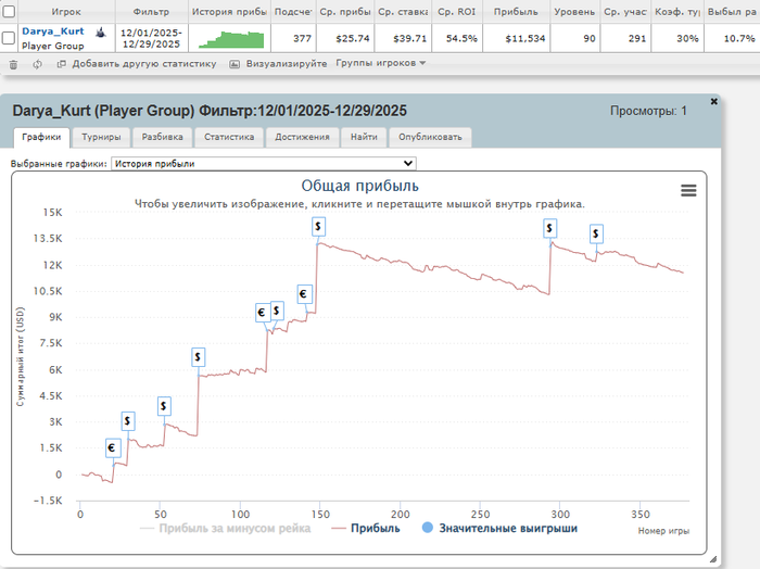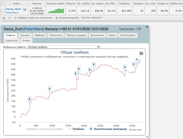 Примерно с осени я убрала самый низ загрузки-регулярные турниры за $11, а так же женские за $8, поэтому аби вырос до $45, но до сих пор играю саты по $11, особенно в начале/конце сессии, когда не так много столов.