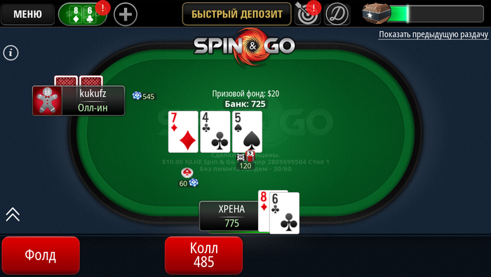 300-600-600, со средней 1.5к от слабо агрессивного взрослого кавказца, смотрим на , за нами молодой агро в тилте со стеком 6.5к, решаем подколить и закрывать его АИ