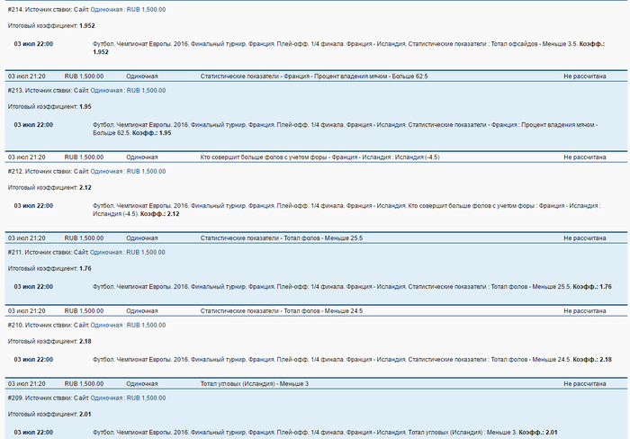 02 июл 22:00 Ставки LIVE. Футбол. Чемпионат Европы. 2016. Финальный турнир. Франция. Плей-офф. 1/4 финала. Германия - Италия. Статистические показатели : Total Fouls - Under 22.5. Коэфф.: 2.02