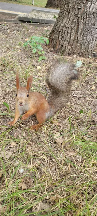 Погуляли по парку с белками, пару рас спасли их от коршуна(или сокола, я не уверен).