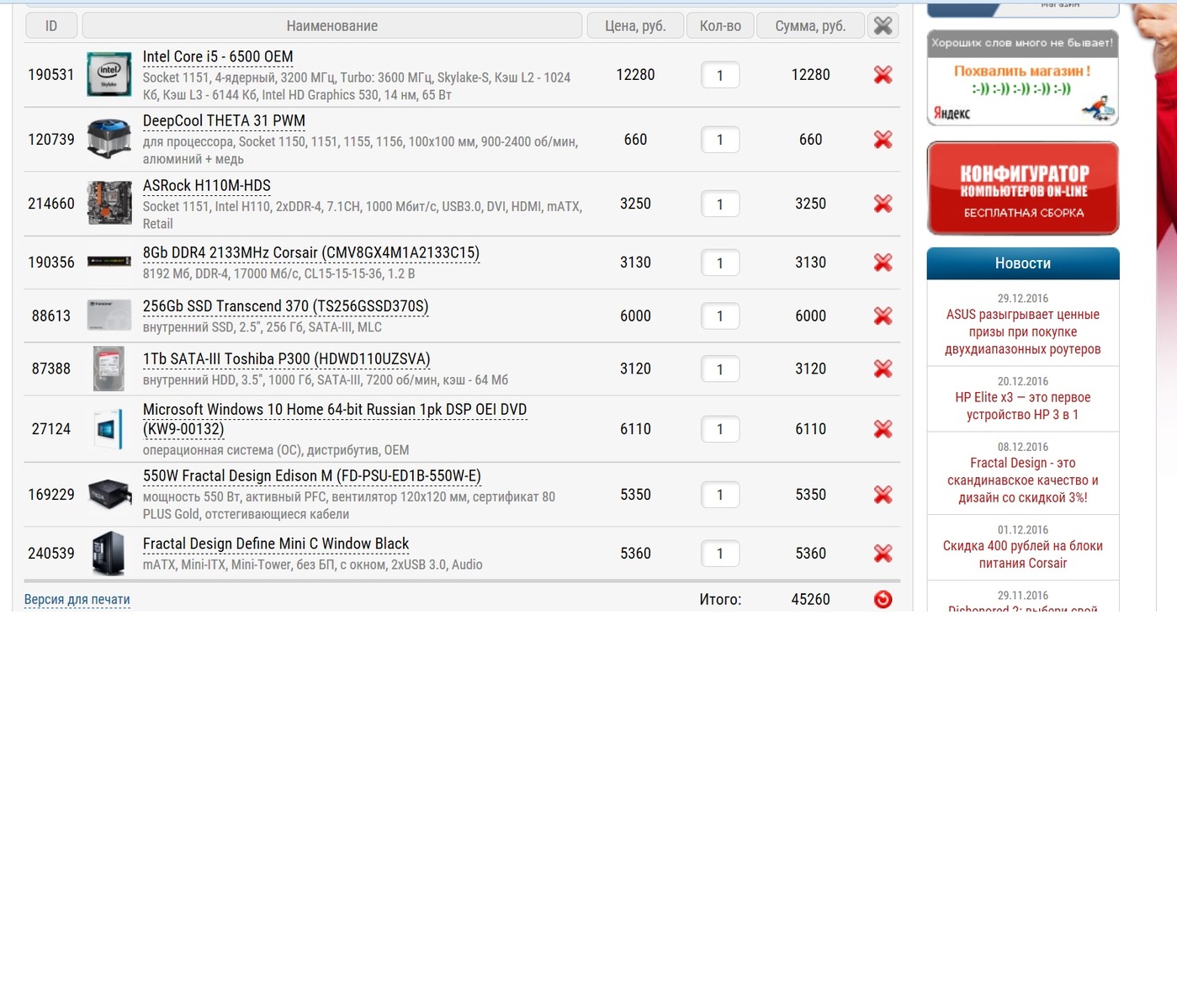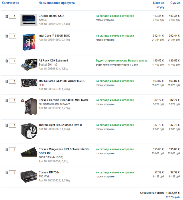 Собрался как то я купить комп, накидал конфиг, уважаемый kemg накидал свой, я его копирнул и закинул в корзину в редгаре.