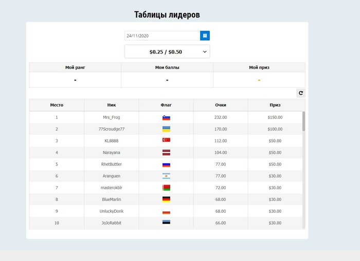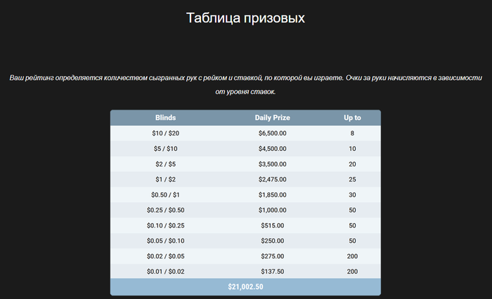 Здравствуйте. Как происходит начисление очков в ежедневный рейтинг Омаха Лидерборд $20,000 по каждому из лимитов, так как правила, очевидно, разные?