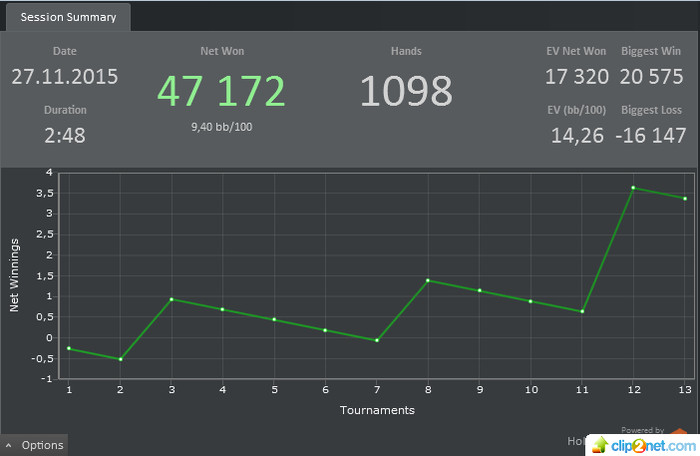 День 8 Вчера не играл Сегодня играл на твердую 4,мисскликом зарегался в 1$-45 на предфиналке отдал топ 2 стек по глупости.ХМ потерял 3 турнират,резалты не правильны. Турниров:12 Профит:-0,70 БР:21,60