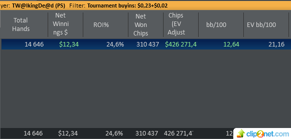 День 7 Играл на 3.Надоело мне уже играть эти турики,но все же держусь,с такими дистанциями я буду их играть ещё год.Надо увеличивать количество столов или длину загрузки. Турниров:12 Профит:3.38$ БР:22,34$