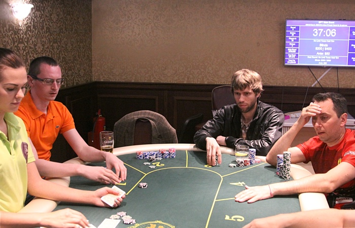 Начался пятый на сегодня уровень - 200/400/50. В главном турнире SPT уже 28 входов, еще два и будет перекрыта гарантия в $15,000. Учитывая, что только сегодня еще впереди четыре 45-минутных уровня, во время которых можно сделать ребай, а завтра еще два, о том, что Main Event пройдет без оверлея можно не беспокоится!