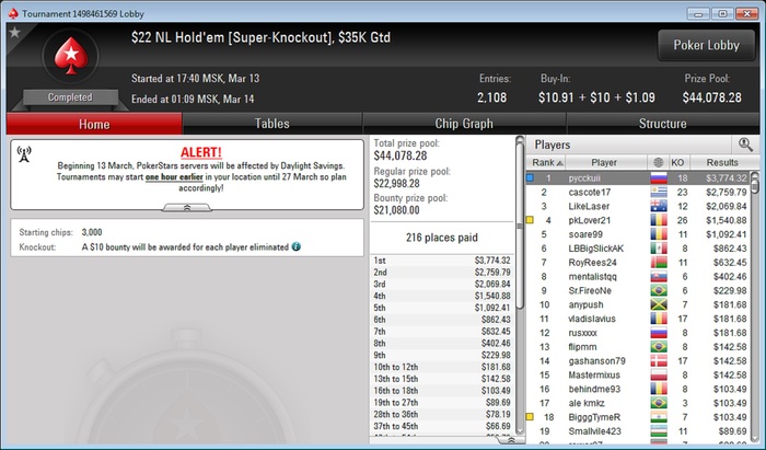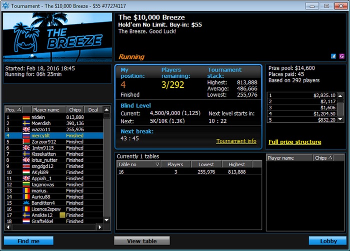 если честно, недоволен как играл в 3макс!! Правда Wafal дико заходило... особенно последней раздачей- выставился в стеках по 20бб с KQs против AQo. Думаю, можно было разыграть иначе эту раздачу! Завтра сяду анализировать) А так весьма удачный сегодня выдался денек))