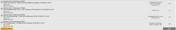 - ЦСКА выход из группы - 2,80