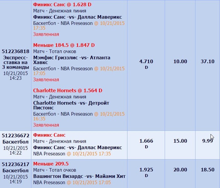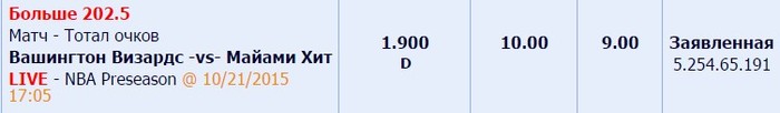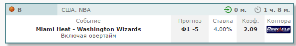 ставок 155$ результат +82$ (52%) с майми-вашингтон после 1 четверти понял что ошибся и взял обратку в лайве(+возможна была вероятность попасть в коридор)