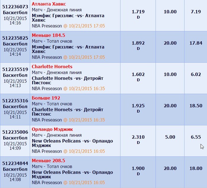 да уж . орландо-н.орлеан 101-101. 2 раз обжигаюсь на этом. интересно в пинке возможность ставит без учета о.т. ? такой нонсенс, а если в футболе в кубках ставить тотал голов с учетом о.т. и да кучи пенальти тоже.