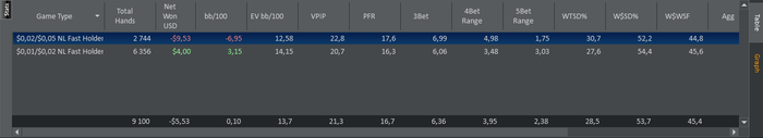 MP1: $2.58 - VPIP: 16, PFR: 12, 3B: 4, AF: 1,9, Hands: 492