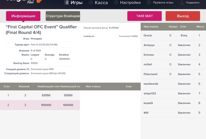 Планирую приехать в субботу на дедлайн сат к мейну. Сам мейн за бай ин сыграть возможности сейчас нет. Вопрос - будет ли возможность организовать часов в 16-17:00 сателлит на монстрстек ивент (2500), к примеру с входом по 300-500грн? Т.к. в случае неудачи в сате в 13:00 куковать до 21:00 довольно долго. Ну и желающие сыграть сателлит к все же недешевому монстрстеку также должны найтись.