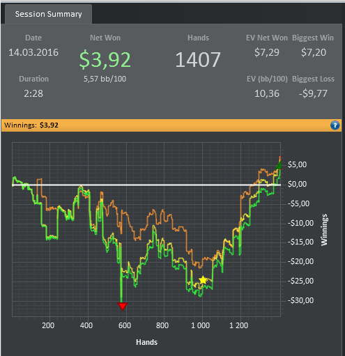 Hero mucked and lost (-$3.89 net)