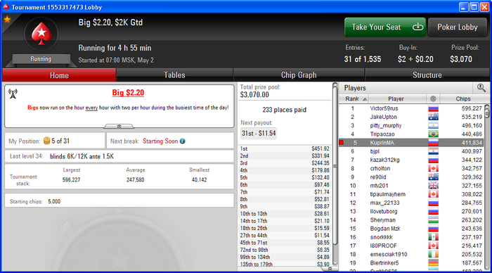 Если не разбанят, возможно перейду на другие дисциплины в турнирах. Между прочим в других дисциплинах турниров стало больше, даже в разз и стад х/л 8 турниров в день на микро и в каждом ещё добавлена возможность сделать 3 ре-энтри