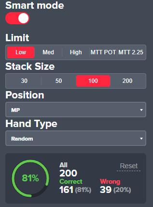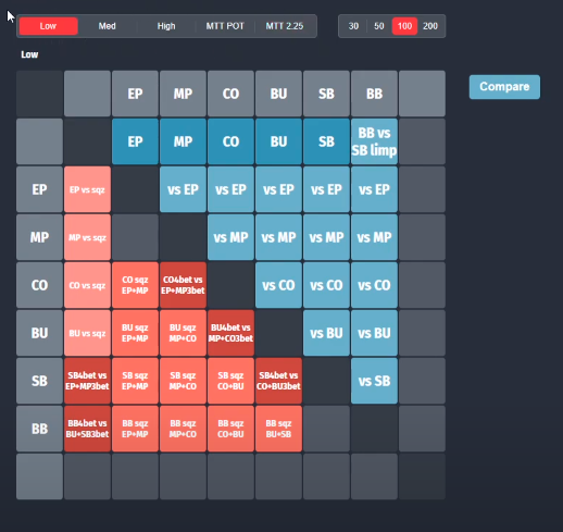 А тут я бы рекомендовал не тренить их все а начать с BTN vs CO и BTN vs EP там идет принципиальная разница. Ну а когда поймешь и здесь что и как, то треним трибеты с SB (чтобы просто понять не коль много дурак! или пас или 3беть).
