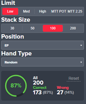 Поработал в тренажере омахапро по опен рейзам со всех позиций. Выписал руки в которых допустил ошибку. Теперь останется их объединить в группы и понять в чем ошибка и почему.