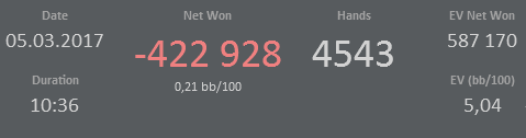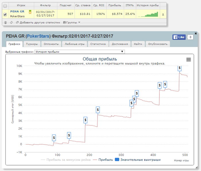 Месяц вышел примерно такой ( нехватает пары заносов , и один рум не досчитал ещё турики ) . В марте постараюсь отыграть на аби10+ уже . Торопиться некуда