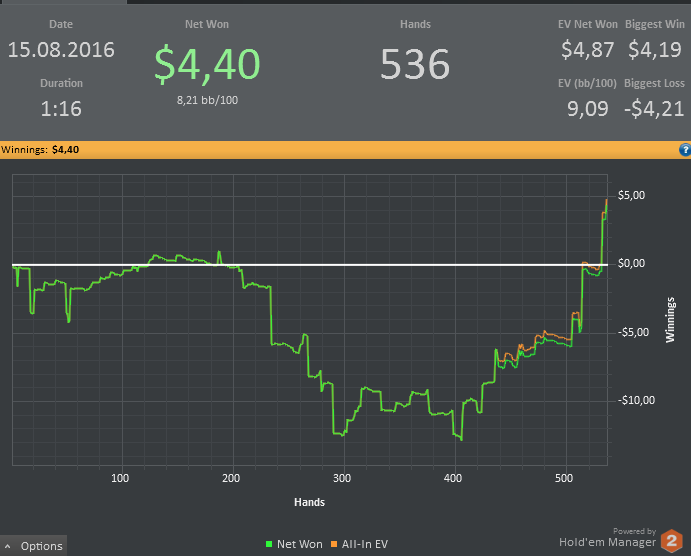 смотри что выходит. Ты выиграл стек в абсолютном кулере. Тут нет скилла, нет чуйки, нет удачи. Просто кулер. И рад этому. Завтра старзы сдадут наоборот, ты продуешь стек и будешь хуесосить оппа, покер вообще и старзы в частности. В итоге останешься ни с чем(за минусом рейка конечно) и при этом потратишь кучу эмоций. Сильные эмоции в покере -это прямой путь к тильту и заливу. Учись пресекать эти эмоции. Играй по банкроллу и работай над игрой, и хорошие результаты не заставят себя ждать