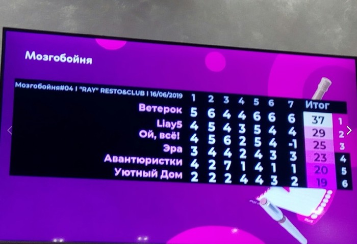 А cейчас минуточка похвастаться!))) Вчера первый раз учавствовала в "мозгобойне", очень понравилось, полна впечатлений) Атмосфера, викторина с ее вопросами и динамикой были на высоте, ведущий активный и веселый, еда вкусная - вискарь вкусный, место проведения было симпатичное))