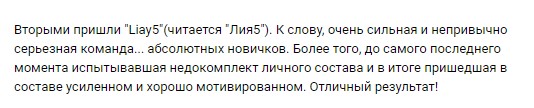 Команду я формировала аж за 2 недели, но за сутки от 6ти заявленных человек нас осталось двое, пришлось в срочном порядке добирать и знаете что получилось? Адская смесь из: трех юристов, кандидата исторических наук, военной, воспитатель из детского сада моего младшего сына, ну и собственно я) Тащили просто на скиле - как итог почетное 2е место!!!!!!