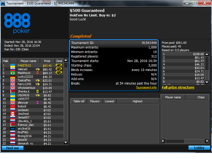 и снова не доезды, уже смешно ))) в хоте за 3 топ80, в биге за 3 топ70, рабочие стеки были, но увы.. но самый шикарный не доезд случился на 888. после 9,5 часов в турнире вот такое раздали )))
