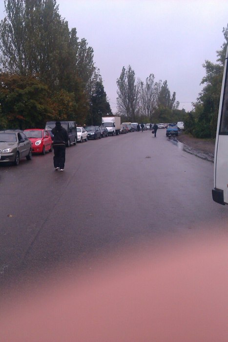 Итак о поездке. Начну с самого кошмарного - это обратная дорога. По ощущениям, очереди на выезд из ДНР больше и по времени они тянутся дольше. На блокпостах запрещена любая сьемка и звонить тоже нельзя, военные могут разбить телефон и лицо. На одном из постов солдат остановил автобус, чтобы проверить не сидит ли кто с телефоном в руках, на постах скучно Но я все же сделал пару фоток: Это вид на очередь из машин и автобусов с двух сторон, естественно вся она в кадр не поместилась и на самом деле простирается дальше. На машине гораздо дольше проходить таможню, если очередь из людей раз в 20 минут продвигается на пол метра, то очередь из машин уныло стоит на месте (очередь из людей сфоткать не удалось, потому что она находится вблизи военных).