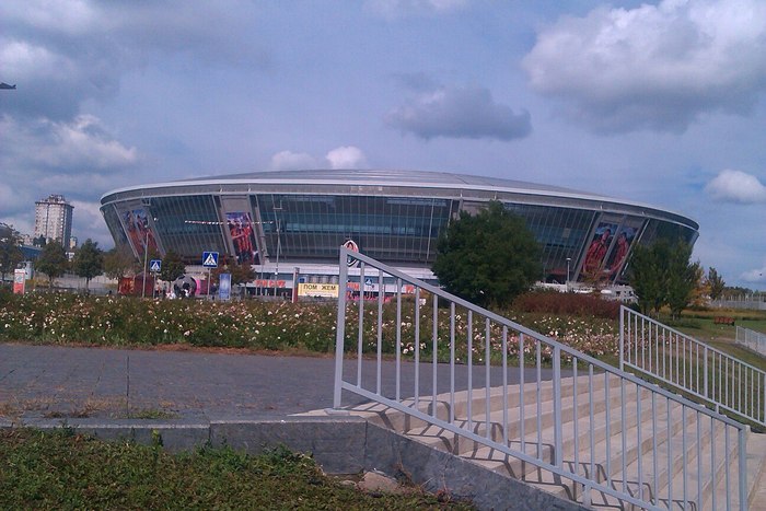 Дальше у молодоженов был фотосет по всем интересным местам и паркам Донецка. Пока мы их ждали и мерзли решил сделать пару фоток: Донбасс Арена стоит как ни в чем не бывало, возле нее проходят фотосессии свадеб и так же прокат гироскутеров.