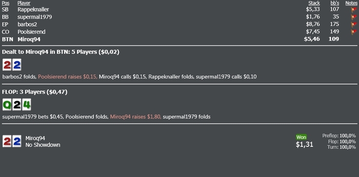 Poker Stars $0.02/$0.05 No Limit Hold'em - 6 players - View hand 3033485