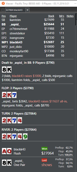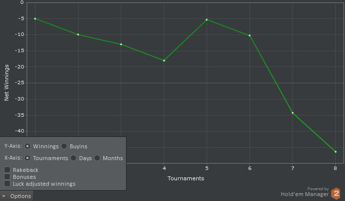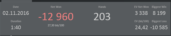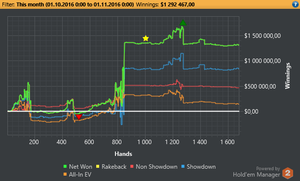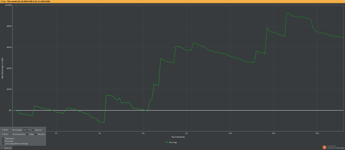 Разбор игры в октябре предполагает сделать упор на дисциплину, сайзинг, количество турниров в загрузке, работа с калькулятором и прочим софтом. Окончание месяца было неудачным, просел на 250$. Небольшая цель - через сат за 0.90$ выйти на SM.
