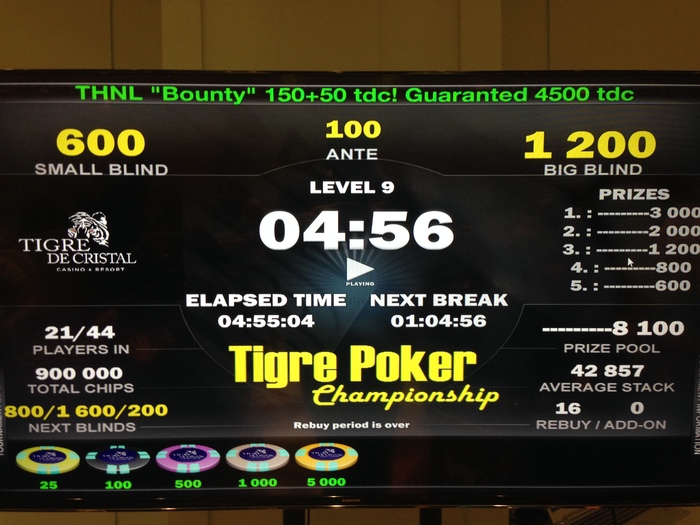 Сегодня 7 января 2017 год, соответственно второй день покерного события "Tigre Poker Championship" А это значит, что в 18:00 стартует турнир: