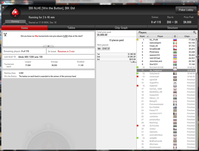 Теперь я склоняюсь перейти снова на режим день/вечер. Планирую соревноваться с ребятами где разыгрываются реально хорошие деньги. Мне не нравится играть турниры где за первое 400$ при Би 50$ где играют одни и те же реги которым похуй, что ты там три барреля поставил на предфиналке или он вколил твой пуш 20бб на 77 за пять чел до денег. Им реально насрать потому, что на них не давит куш.