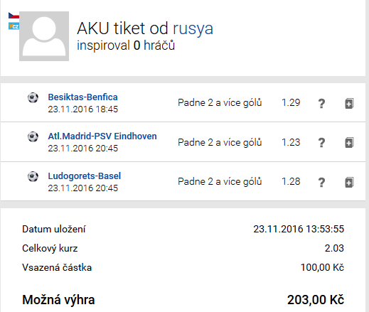 rusJA @ 23.11.2016 Экспресс на ТБ1,5 из трех матчей
