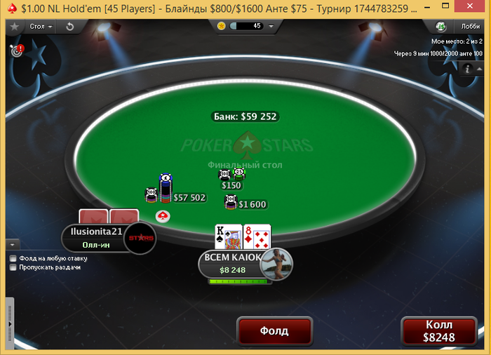 Poker Stars $0.91+$0.09 No Limit Hold'em Tournament - t800/t1600 Blinds + t150 - 6 players