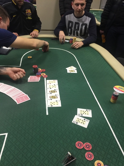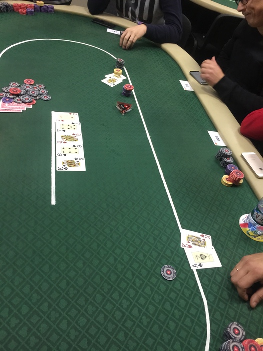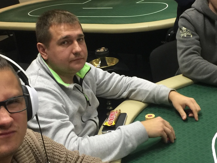 Игорь попека запушил 23600 и на бб Игорь царик нашёл . На 9бб не выбросил, и выставился в коин с попеки. На флопе уже упал а на Ривере ещё и . Каратыши играют надёжно, в игре все ещё 8человек.