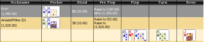 В полулимитном холдеме сначала КJ<K3; а потом уже сам не смог скинуть вторую пару против агрессивного оппа - 53 место.