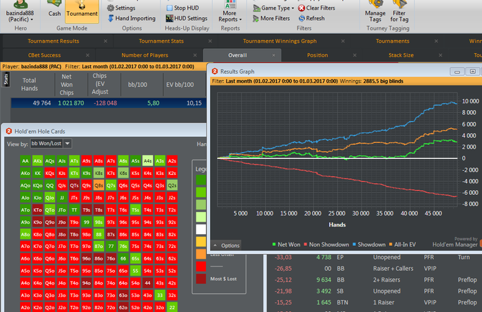 Уменьшил количество коллов по терну на 32%~! Уменьшил количество коллов по риверу на 51% !!!!!!!!!!!! ОМГ,рука лицо. Добавил трипл барелей в хрен пойми какие доски Добавил донков (% не помню) Прибавил блефовых Ч\Р ( % не помню) апд. по 1% на терн и флоп Прибавил флетов. Прибавил СС в МП и СО ( по1%) Понизил ВПИП\пфр (2%\1%) Урезал пуш фолд спектр (хз хорошо это или плохо) Урезал Опенрейз спектр со стеком <20бб